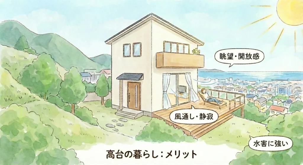 大雨のたびに避難を検討したり、家財の損失を恐れたりせずに済む環境は、平地での暮らしにはない強みです。