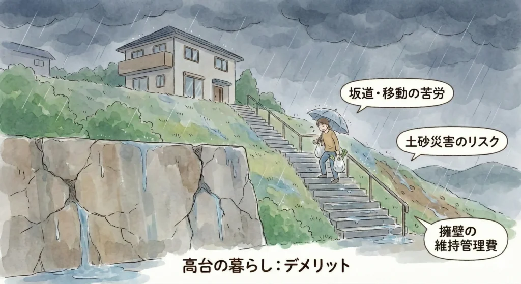 一方で、高台という立地条件特有の問題点も潜んでいます。